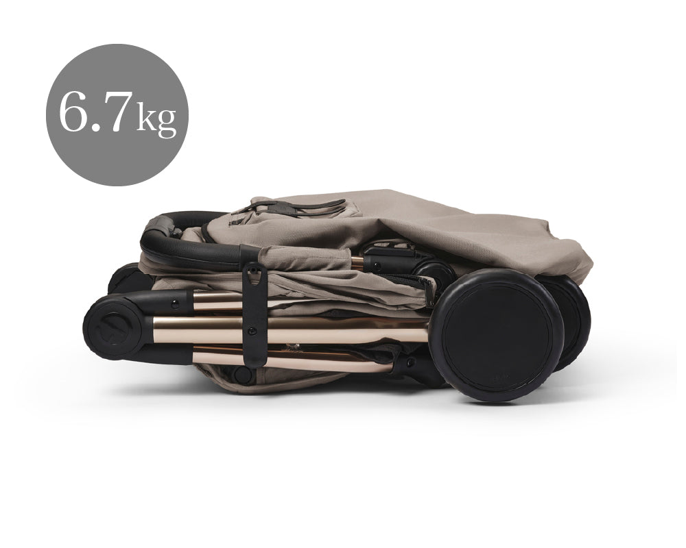 軽量(6.7kg)で片手で押したり方向転換したりしやすい設計。折りたたみも直感的な操作で車移動・電車移動にも便利。多くの航空会社の機内持ち込みサイズにも適合。