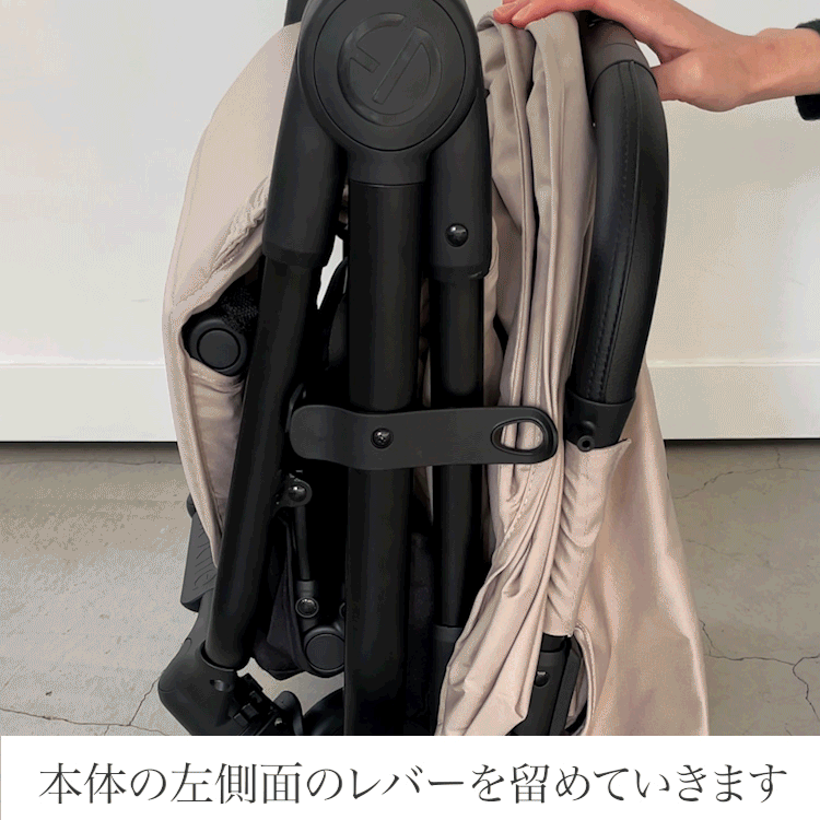 ・ベビーカーは折りたたんだ状態で自立させることができます。