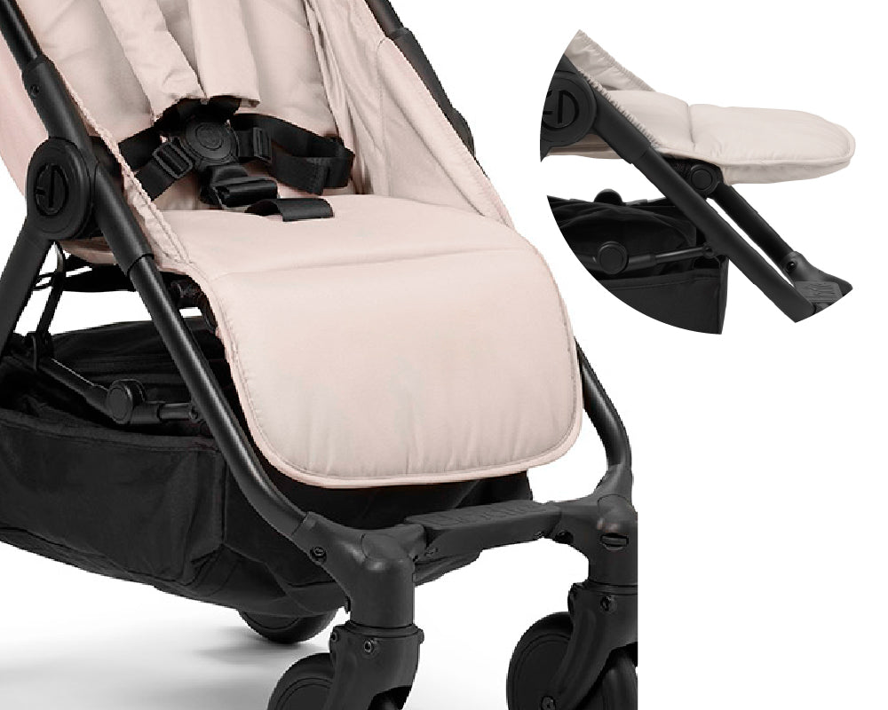 ・折りたたみ式のUPF50+キャノピーはファスナーを開けると腰ベルトまでかかりベビーカーでのお昼寝タイムも安心