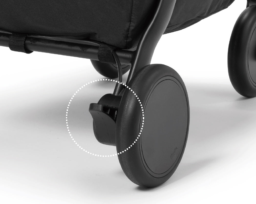 ワンタッチで操作できるフットブレーキを採用。スムーズに停止・固定ができ、安全性を確保。
