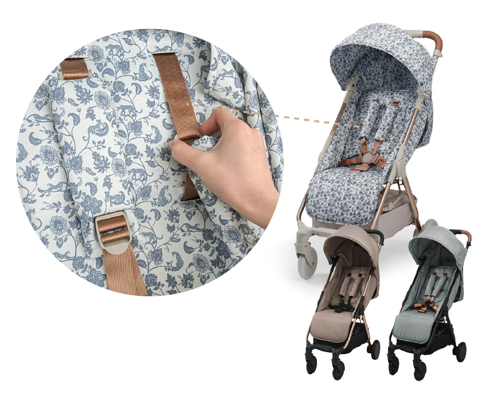 Garden Leo Toile/Tender Taupe/Hazy Jade/Pimpernel/Black/Moon Shell6色のシートベルトがスライドさせるだけで長さ調整が可能に。よりスムーズにベルトの位置を変更でき、お子様にぴったりフィット。