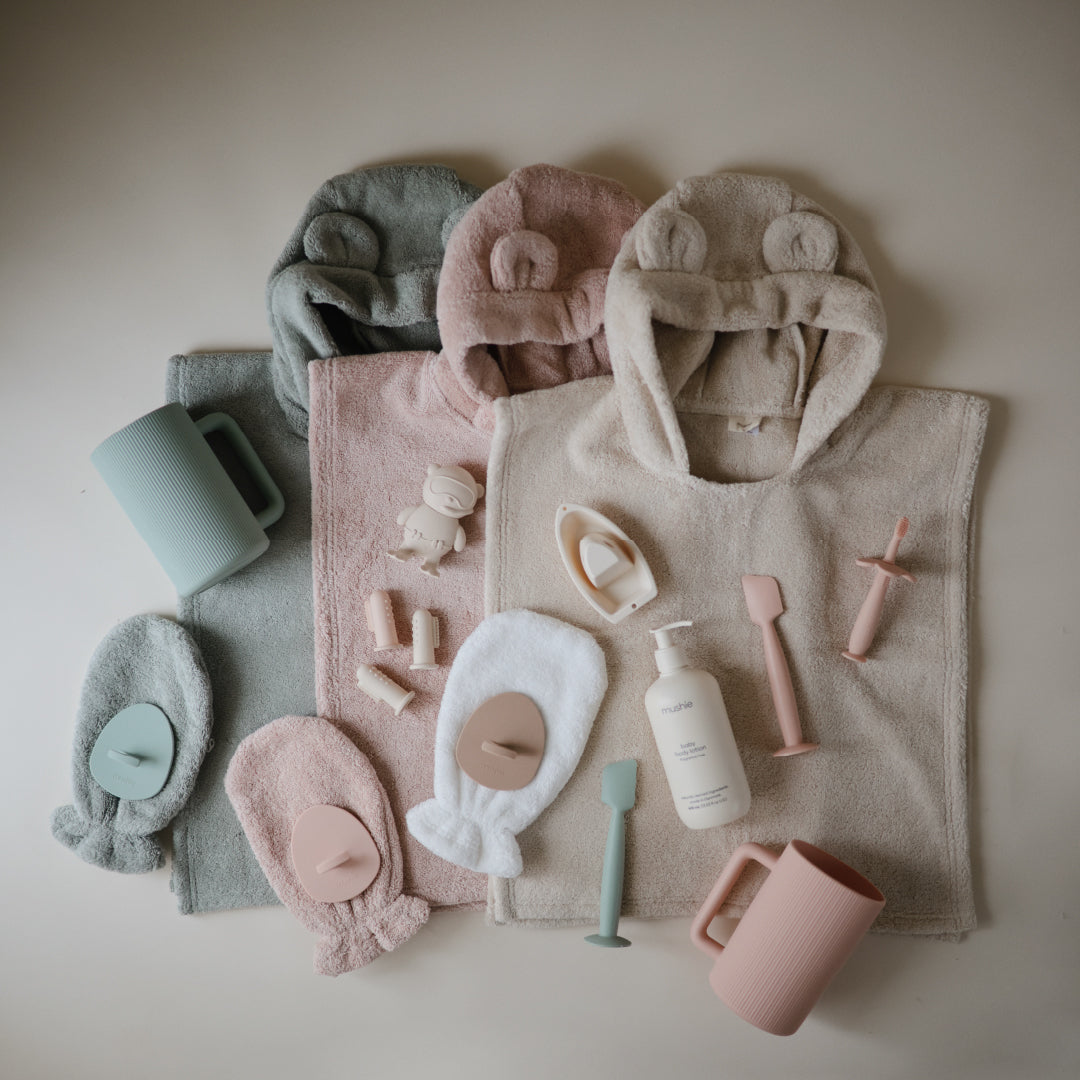 ・オーガニックコットン100%で仕立てられた、優しい肌触りのおしゃれなバスポンチョ。