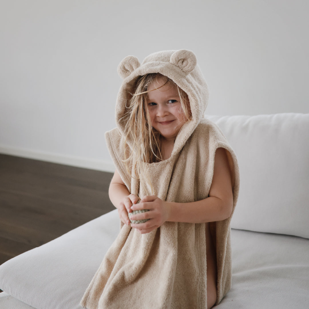 シンプルでナチュラルなデザインのベアポンチョタオル。