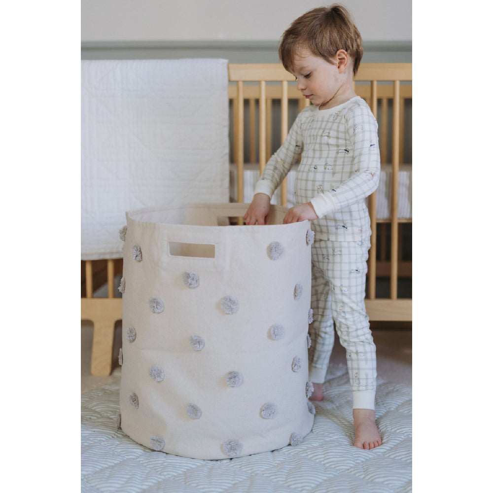 本や電車、工作用品などを整理整頓できます。お子さまの宝物を入れたり、家族でまとめて収納するのにも最適なサイズです。ひとつひとつ手縫いで作られたPom Pom Binはファンの間でも人気があります。