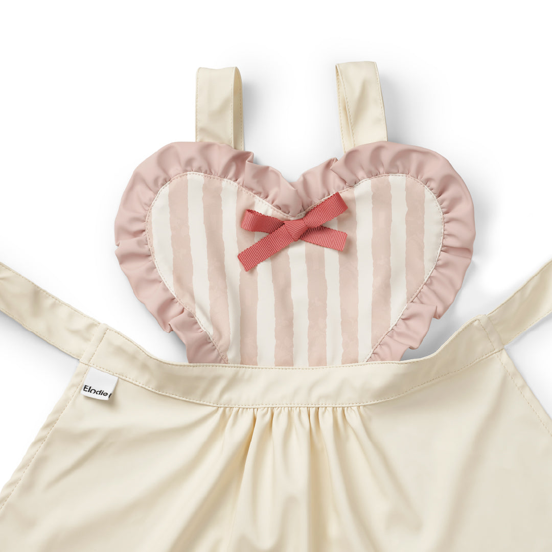 エプロンタイプで身丈が35cmあるので、お腹の下までお気に入りにお洋服を食べこぼしの汚れから保護します。お食事だけじゃなくお手伝いの際もつけてあげるとママになった気分で楽しくお手伝いもできます。