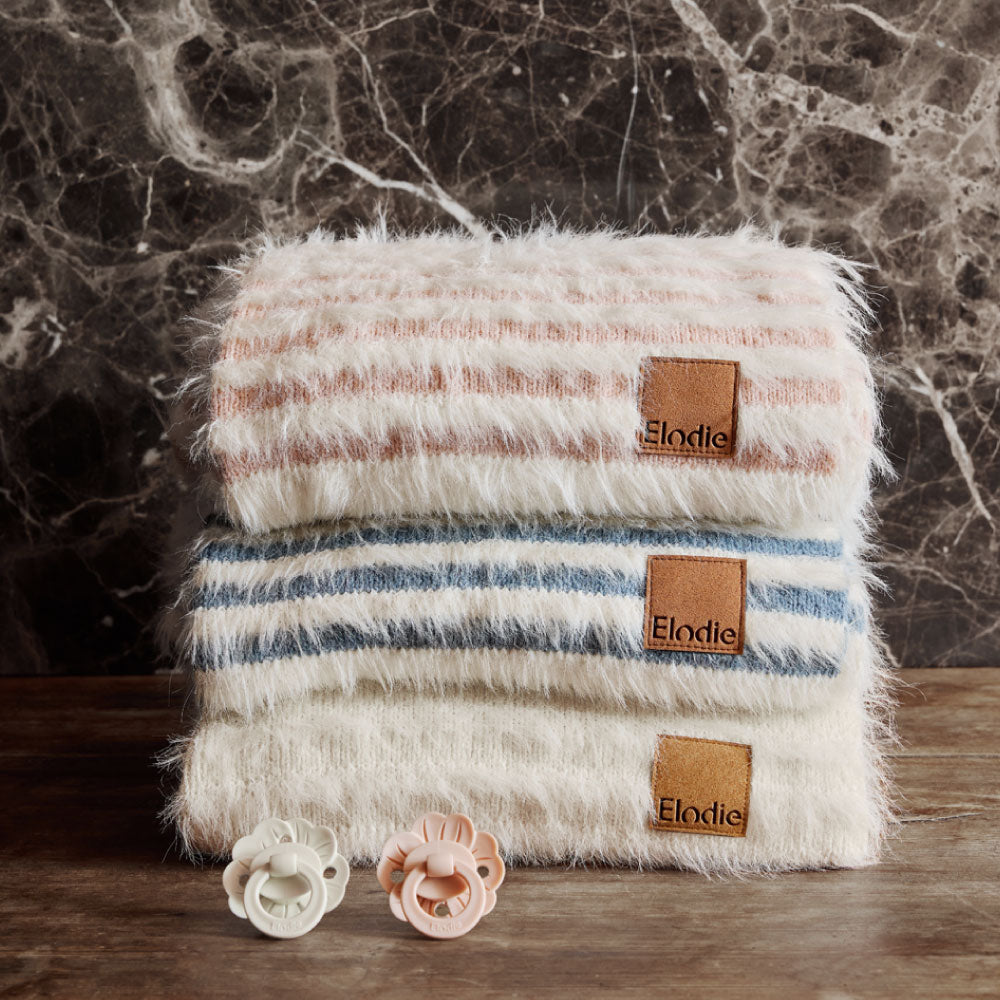 ファー付きニットブランケットで、赤ちゃんをやさしく包み込み、快適に暖かく保ちましょう。