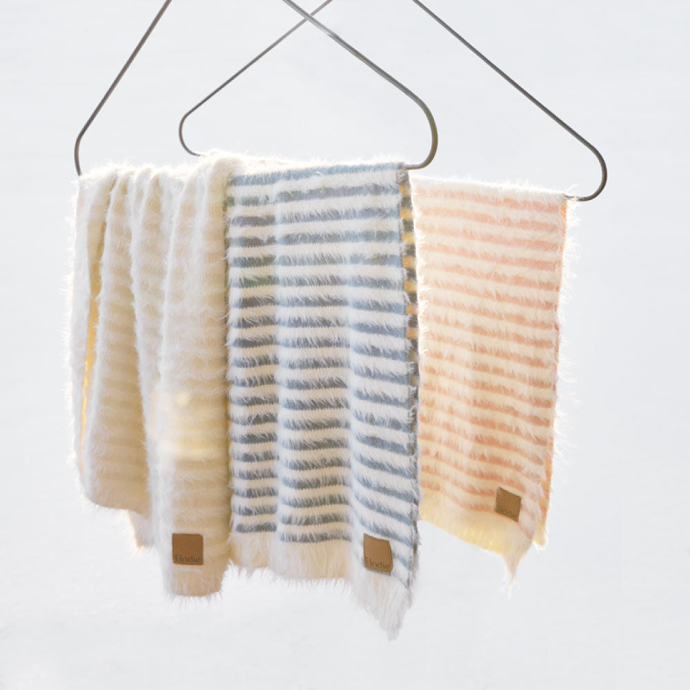 肌触りのよいファーをあしらったブランケットは、赤ちゃんの小さな体をやさしく包み込むのにぴったりのサイズ。