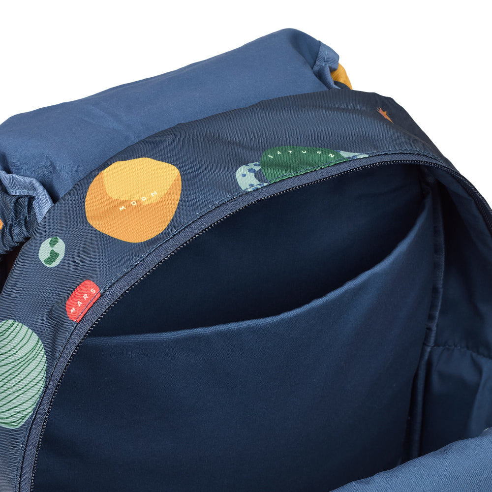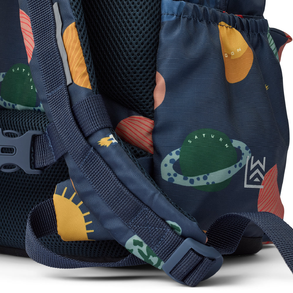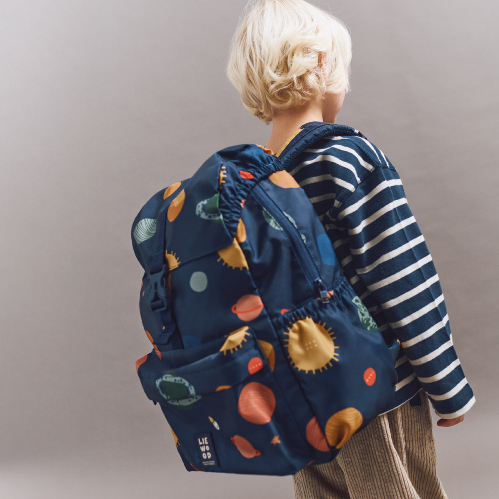 コンパクトで人間工学に基づいた背負いやすい設計が魅力の、5歳以上のお子様の通学デビューにぴったりのキッズ用バックパックです。使いやすい収納ポケットやクッション性に優れたパッド入りで、毎日の通園・通学を快適にサポートします。遊び心のあるプリントデザインや、夜道でも安心の反射素材の使用も嬉しいポイント