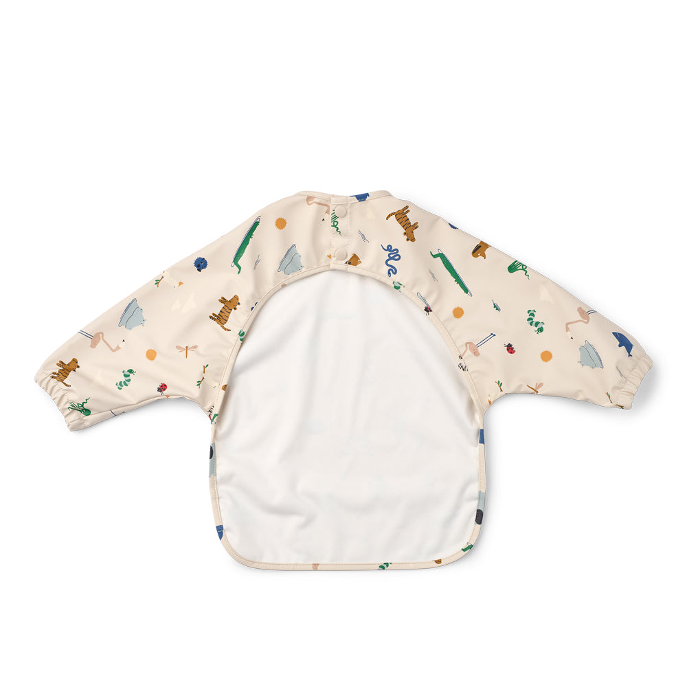 自分で食事を食べ始めたお子様にぴったりの長袖お食事エプロン。