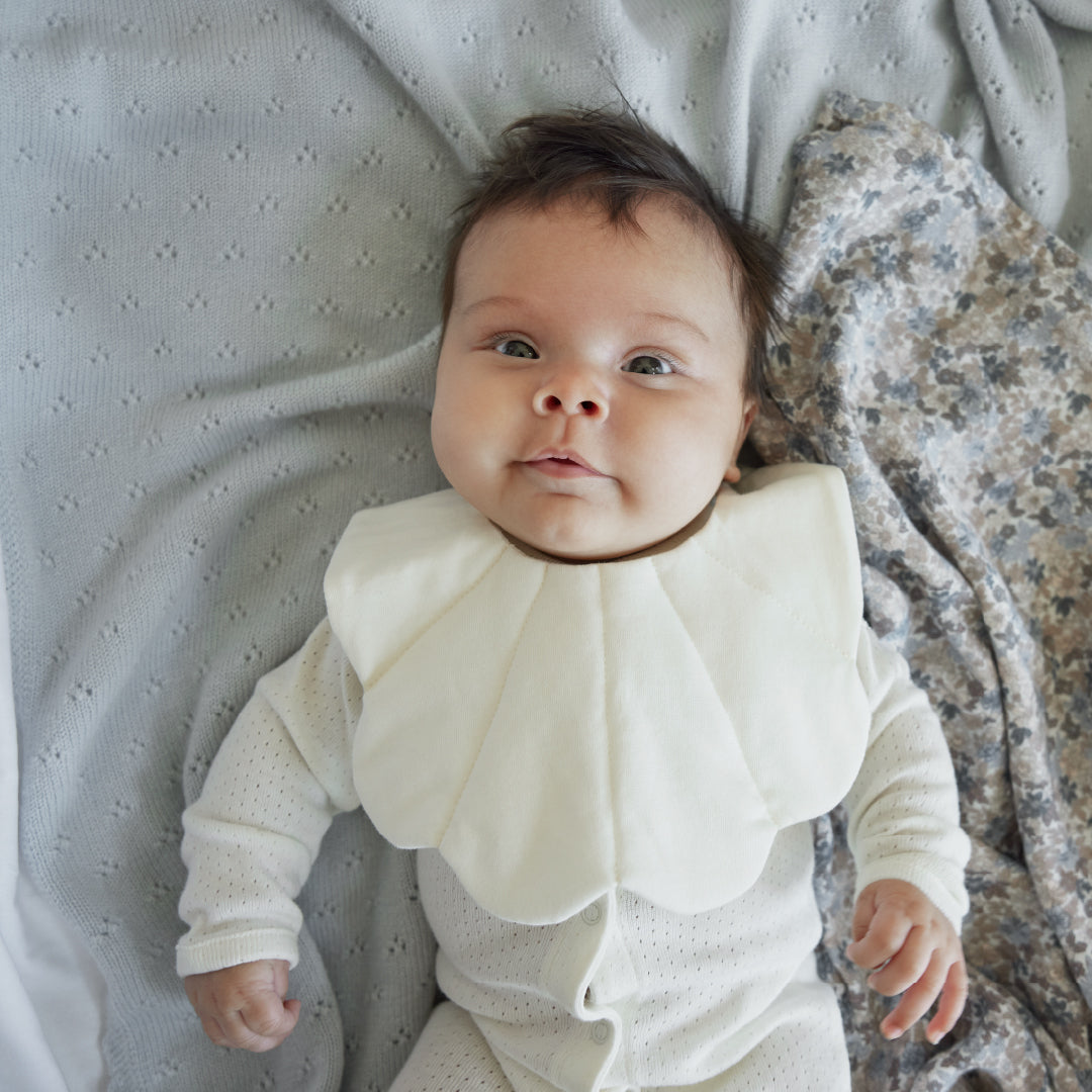 ポインテルブランケットは、愛らしいレースの模様とカシミアのような手触りが特徴です。赤ちゃんにぴったりのサイズ感でベビーカーやベビーベッドで使える、あたたかくてやわらかな素材でいつでも心地よく包み込んでくるので快適です。洗濯も簡単で、何度も洗っても品質を損ないません。お家でもお出かけ先でもどこでも使えて赤ちゃんの敏感なお肌にも優しい肌触りです。