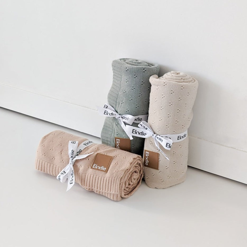 ポインテルブランケットは、愛らしいレースの模様とカシミアのような手触りが特徴です。赤ちゃんにぴったりのサイズ感でベビーカーやベビーベッドで使える、あたたかくてやわらかな素材でいつでも心地よく包み込んでくるので快適です。洗濯も簡単で、何度も洗っても品質を損ないません。お家でもお出かけ先でもどこでも使えて赤ちゃんの敏感なお肌にも優しい肌触りです。