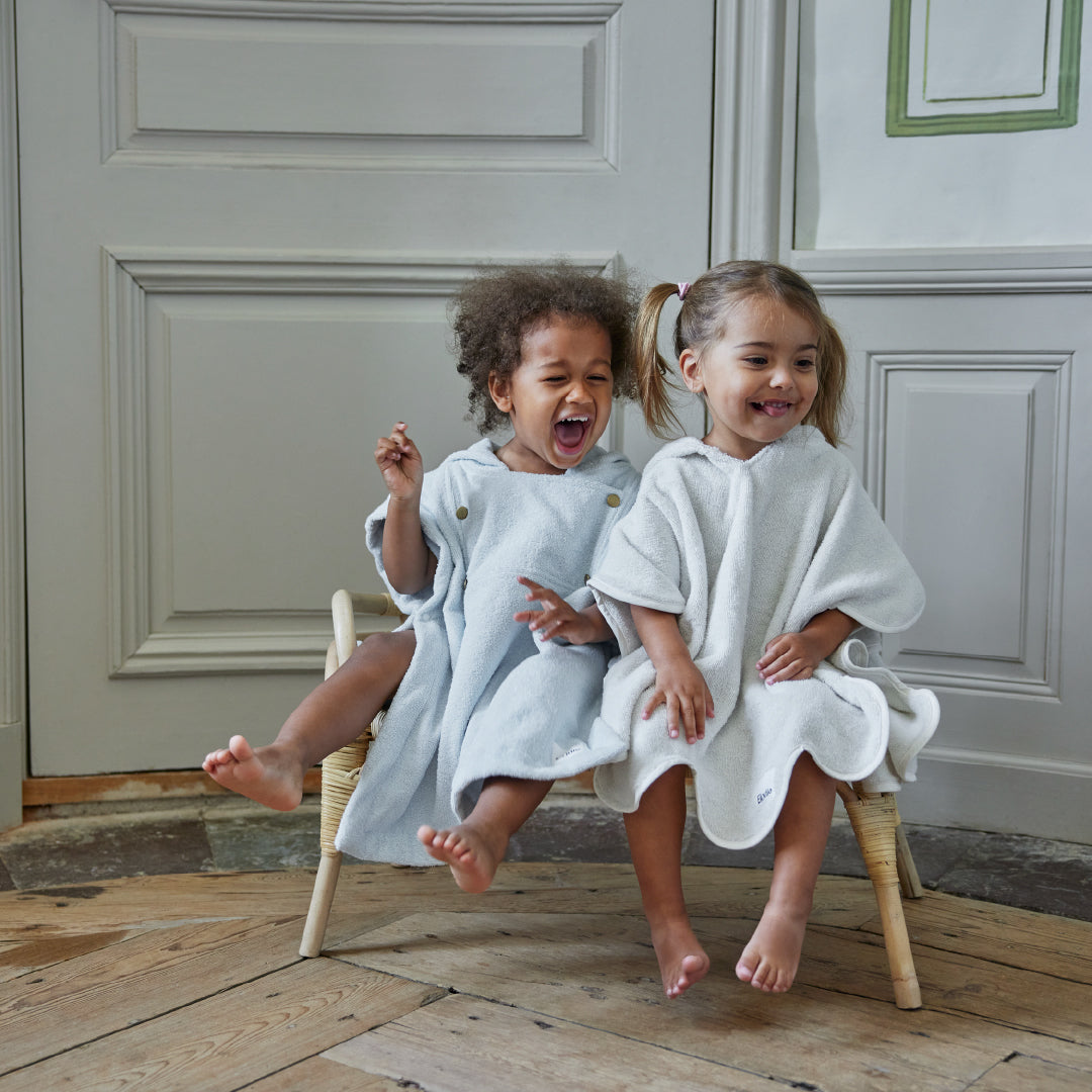 ポンチョは屋内外お使いいただけ、お子様のアクティブな動きを邪魔しないデザインに 仕立て上げられています。