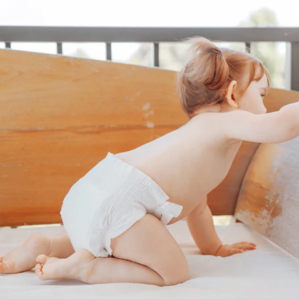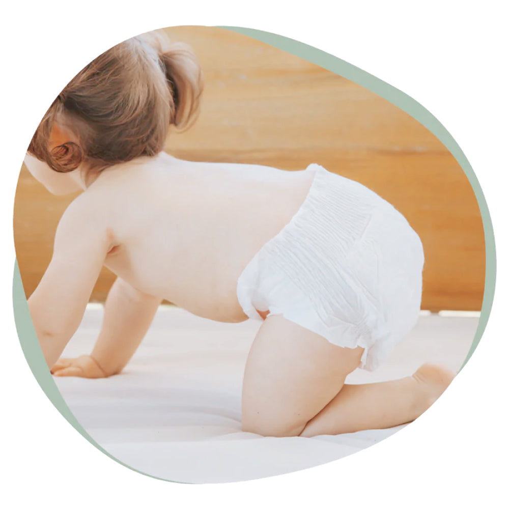肌に触れる部分は100%植物由来の素材を使用することで赤ちゃんの肌への負担を最大限抑えました。羽毛のような柔らかさで赤ちゃんのお尻をやさしく包み込んでくれます。